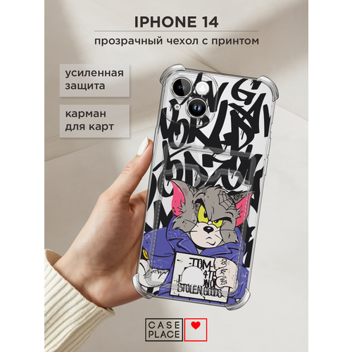 Чехол на Apple iPhone 14 (Айфон 14) с картой и принтом Том и Джерри