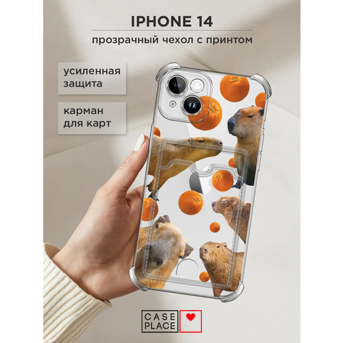 Чехол на Apple iPhone 14 (Айфон 14) с картой и принтом Капибара