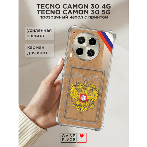 Чехол на Tecno Camon 30 4G/30 5G (Текно Камон 30 4G/30 5G) с картой и принтом "С гербом России"
