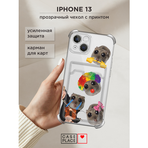 Чехол на Apple iPhone 13 (Айфон 13) с картой и принтом Хомяки
