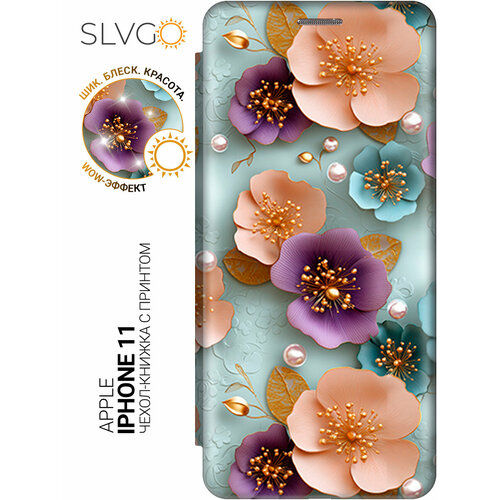 Чехол-книжка на Apple iPhone 11 с принтом Нежный цветочный вальс, bkg