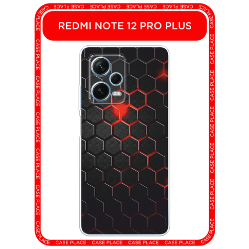 Чехол на Xiaomi Redmi Note 12 Pro Plus / Сяоми Редми Нот 12 Про Плюс с принтом Фон соты красные