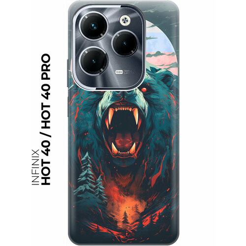 Силиконовый чехол на Infinix Hot 40 / Hot 40 Pro / Инфиникс Хот 40 / Хот 40 Про с рисунком "Медведь и флаг России"