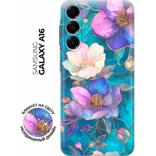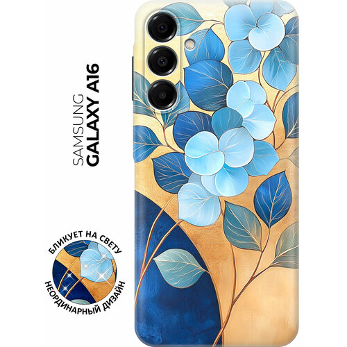 Силиконовый чехол на Samsung Galaxy A16 с принтом "Синие листья на золотом"
