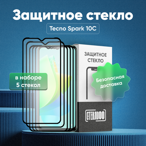 Набор защитных стекол для TECNO Spark 10C c полным покрытием, серия Стеклофф Base, 5 шт