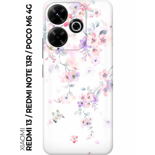 Силиконовый чехол на Xiaomi Redmi 13 / Redmi Note 13R / Poco M6 4g с принтом "Акварельные цветы вишни"