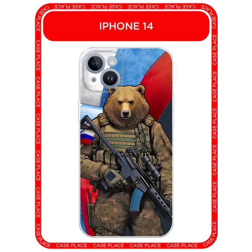 Силиконовый чехол на Apple iPhone 14 / Айфон 14 с принтом Медведь-вояка