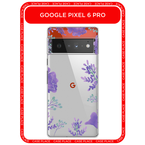 Чехол на Google Pixel 6 Pro / Гугл Пиксель 6 Pro с принтом Сиреневая цветочная рамка, прозрачный