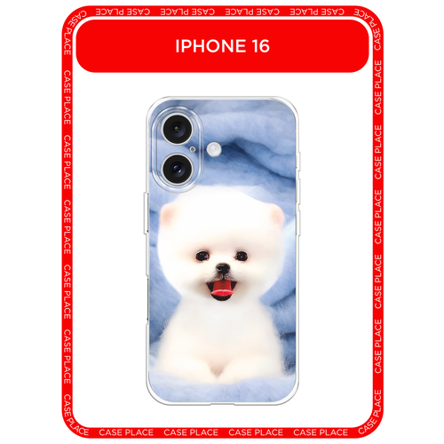 Силиконовый чехол на Apple iPhone 16 / Айфон 16 с принтом Белый пёсик