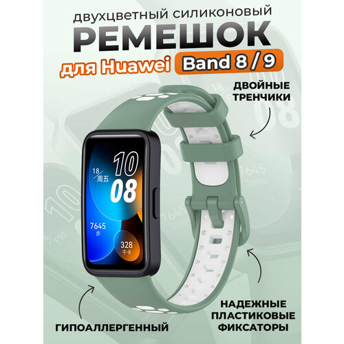 Двухцветный силиконовый ремешок для Huawei Band 8/9, бело-зеленый