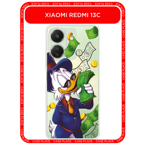 Чехол на Xiaomi Poco C65 / Сяоми Поко C65 с принтом Scrooge McDuck with Money, прозрачный