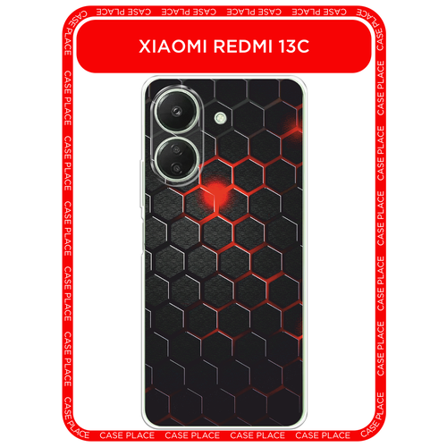 Чехол на Xiaomi Poco C65 / Сяоми Поко C65 с принтом Фон соты красные