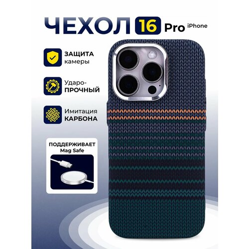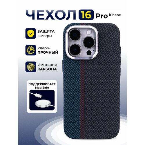 Чехол на айфон 16 про карбоновый Magsafe/iPhone 16 Pro с защитой камеры