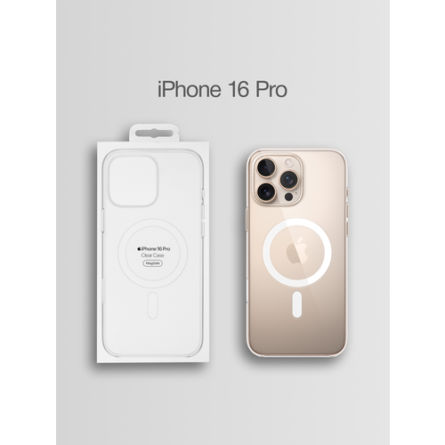 Силиконовый прозрачный чехол с функцией магнитного крепления и беспроводной зарядкой для Iphone 16 pro max / Айфон 16 про макс (Desert Titanium/Пустынный титан)