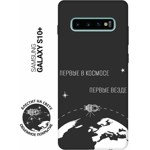 Матовый Soft Touch силиконовый чехол на Samsung Galaxy S10+, Самсунг С10 Плюс с 3D принтом "Avo-Yoga" черный матовый