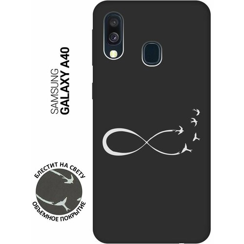 Матовый Soft Touch силиконовый чехол на Samsung Galaxy A40, Самсунг А40 с 3D принтом "Infinity W" черный