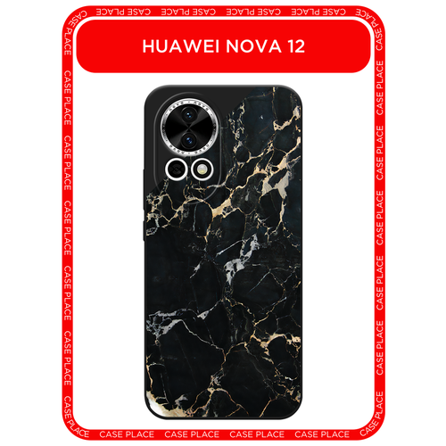 Черный матовый чехол на Huawei Nova 12/Nova13 / Хуавей Нова 12/Нова 13 с принтом Черный мрамор уголок