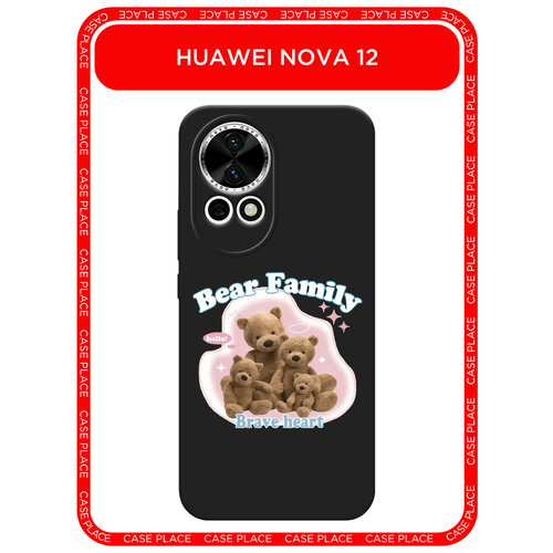 Черный матовый чехол на Huawei Nova 12/Nova13 / Хуавей Нова 12/Нова 13 с принтом Bear family