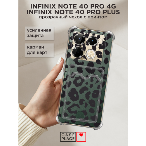 Чехол на Infinix Note 40 Pro 4G/40 Pro Plus (Инфиникс Нот 40 Про 4G/40 Про Плюс) с картой и принтом Леопардовый принт на прозрачном