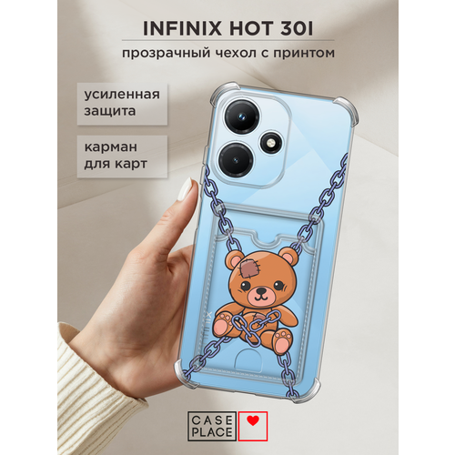 Чехол на Infinix Hot 30i (Инфиникс Хот 30i) с картой и принтом Мишка плюшевый