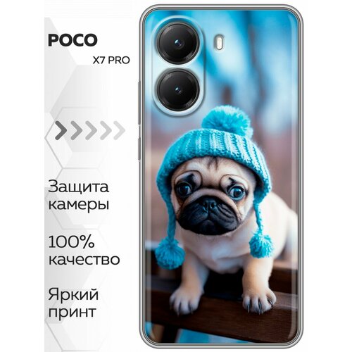 Чехол для Poco X7 Pro с принтом Щенок мопса в шарке (Поко Х7 Про)