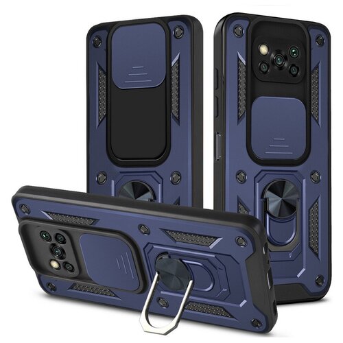 Чехол противоударный для Xiaomi Poco X3 и X3 Pro / Поко Х3 и Х3 Про с защитой камеры armors (Темно-синий)
