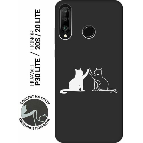 Матовый Soft Touch силиконовый чехол на Honor 20 Lite, 20s, Huawei P30 Lite, Хуавей П30 Лайт, Хонор 20 Лайт, 20s с 3D принтом "Cats W" черный