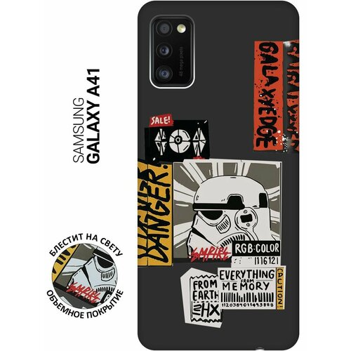 Матовый Soft Touch силиконовый чехол на Samsung Galaxy A41, Самсунг А41 с 3D принтом "Stormtrooper Stickers" черный