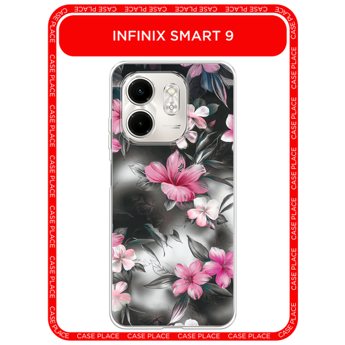 Чехол на Infinix Smart 9/Hot 50i / Инфиникс Смарт 9/Хот 50i с принтом Цветы на сером