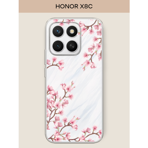 Силиконовый чехол "Весенняя сакура" на Honor X8c / Хонор X8c, прозрачный