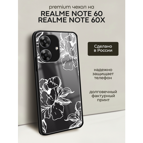 Чехол на Realme Note 60/Note 60X / Реалми Нот 60/Нот 60X с объемным принтом "Контурные цветы"