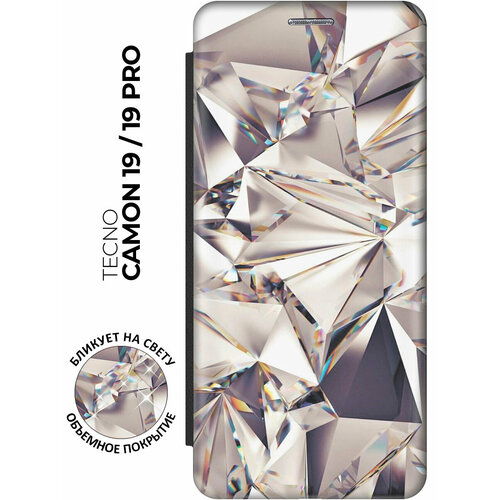 Чехол-книжка на Tecno Camon 19 / 19 Pro / Техно Камон 19 / 19 Про с рисунком "Алмазные грани" черный