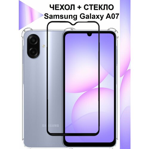 Комплект 2 в 1: Прозрачный чехол с защитой камеры и углов + полноэкранное стекло для Samsung Galaxy A07 / Самсунг Галакси А07