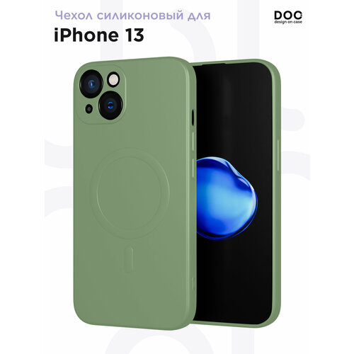 Чехол DesignOnCase "оливковый", для iPhone 13, противоударный, силикон, soft-touch, с Магнитом