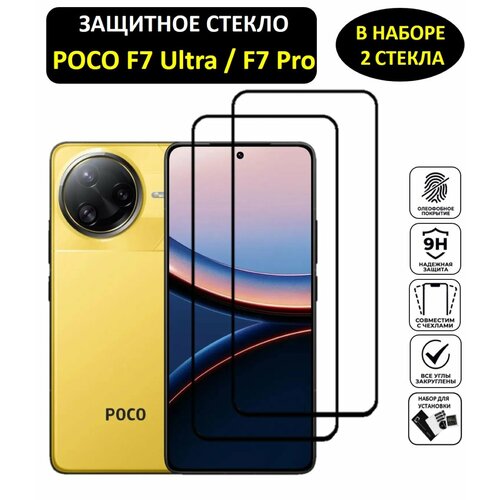 Комплект 2 в 1: Защитное стекло для Poco F7 Ultra / Poco F7 Pro ( 2 шт ) Поко Ф7 Ультра / Поко Ф7 Про Полноэкранное стекло Full Glue
