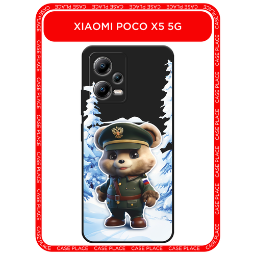 Черный матовый чехол на Xiaomi Poco X5 5G / Сяоми Поко X5 5G с принтом Мишка в форме 3
