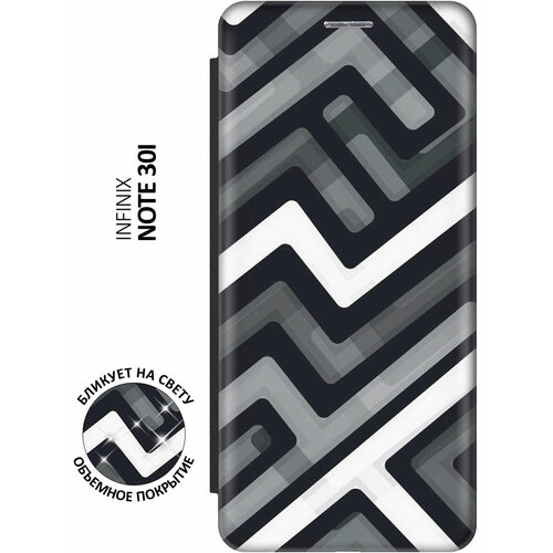 Чехол-книжка Черно-белые зигзаги на Infinix Note 30i / Инфиникс Ноут 30ай с эффектом блика черный