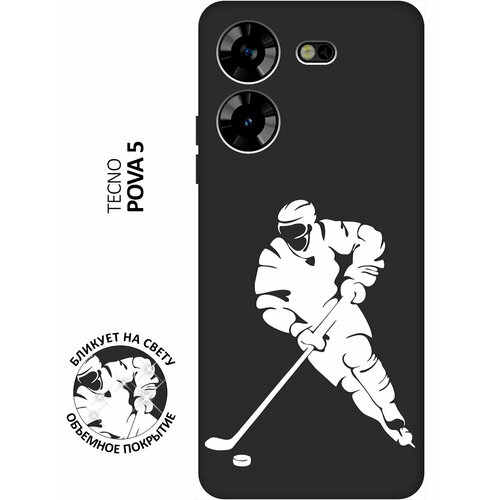 Матовый чехол Hockey W для Tecno Pova 5 / Техно пова 5 с 3D эффектом черный