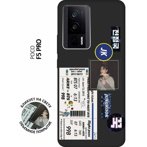 Матовый чехол BTS Stickers для Poco F5 Pro / Поко Ф5 Про с 3D эффектом черный
