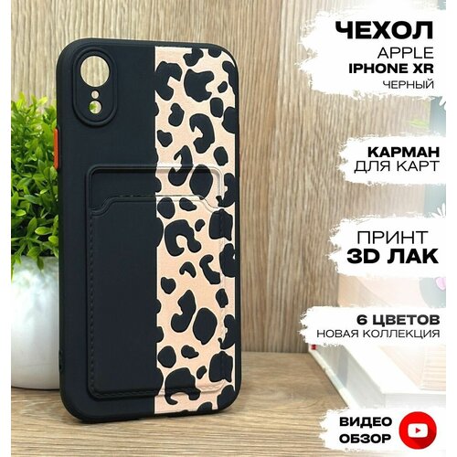 Противоударный Чехол с Принтом (Леопард) для iPhone XR (Айфон ХР) с Кармашком для карт и Защитой камеры. "Черный"
