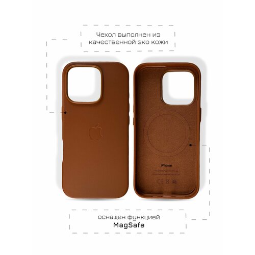 Коричневый Кожаный чехол Leather Case для iPhone 16 PRO с функцией MagSafe