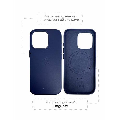 Чехол кожаный для iPhone 16 Pro, Leather Case, MagSafe, цвет темно-синий