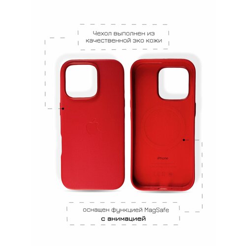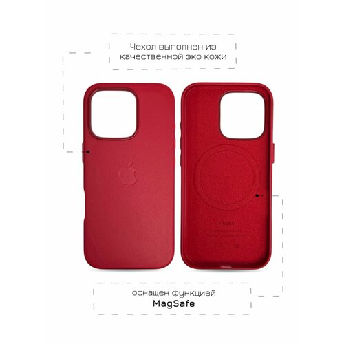 Красный Кожаный чехол Leather Case для iPhone 16 PRO с функцией MagSafe