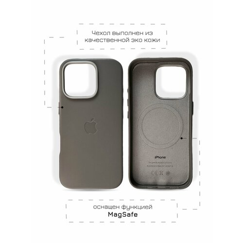 Серый Кожаный чехол Leather Case для iPhone 16 PRO с функцией MagSafe