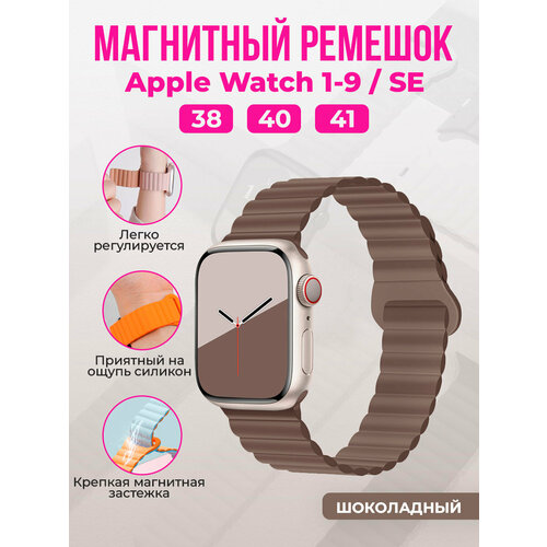 Магнитный силиконовый ремешок для Apple Watch 1-9 / SE (38/40/41 мм), шоколадный