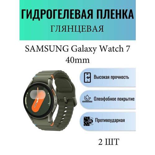 Комплект 2 шт. Глянцевая гидрогелевая защитная пленка для экрана часов Samsung Galaxy Watch 7 40mm / Гидрогелевая пленка на самсунг гелекси вотч 7 40 мм