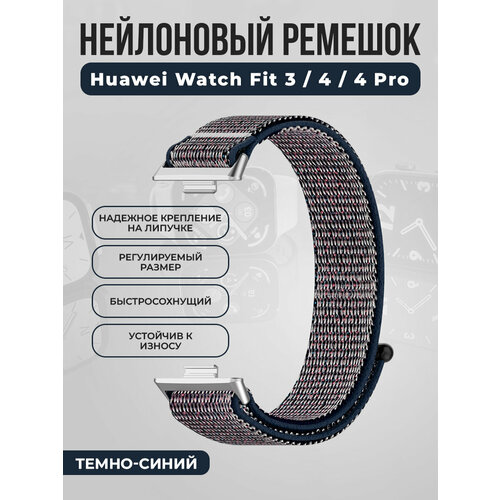 Нейлоновый ремешок на липучке для Huawei Watch Fit 3, темно-синий