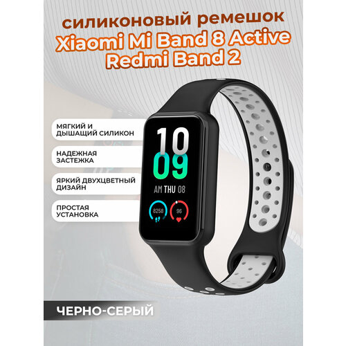 Двухцветный ремешок для Xiaomi Mi Band 8 Active / Redmi Band 2, черно-серый