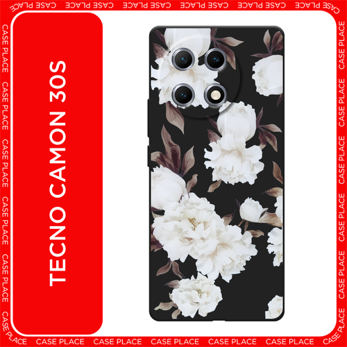 Черный матовый чехол на Tecno Camon 30S / Текно Камон 30S с принтом Цветочная хрупкость 2