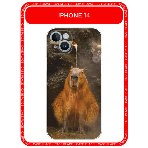Чехол на Apple iPhone 14 / Айфон 14 с принтом Капибара на отдыхе
